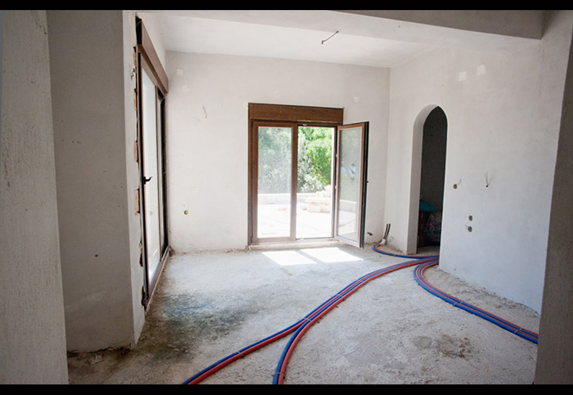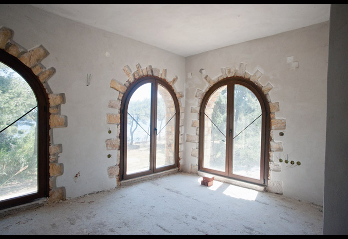 La casa tiene 240 m² y consta de 4 dormitorios, 2 baños, un amplio salón, una cocina y un comedor. La segunda planta no está terminada pero la mayor parte de la construcción está terminada, sólo faltan pavimentos y aseos. La parcela es de 4000 m², llena de árboles y plantas. Hay un garaje y verandas alrededor de la casa. La zona es muy tranquila y a la vez cerca, en coche o moto, de la zona comercial de Lakki y de la preciosa playa de Vromolithos.
