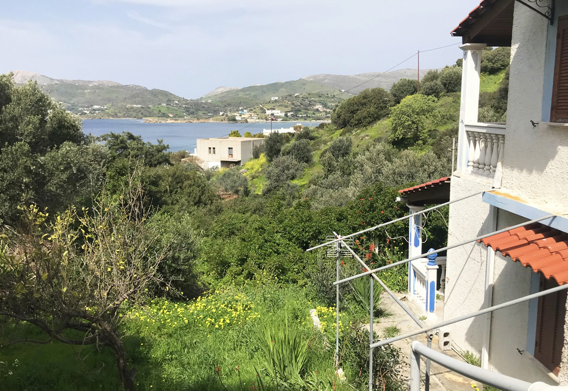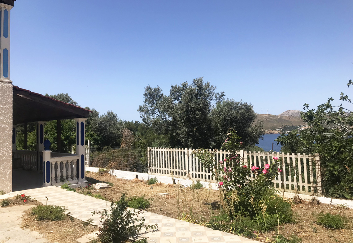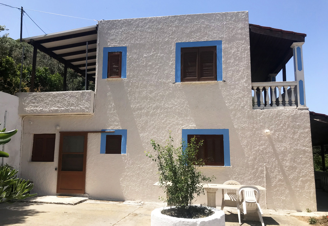 It consists of a courtyard with a garden in front and a garden at the back. On the ground floor inside the house there is a living room, dining room, bathroom, kitchen (with electrical appliances) and a kitchenette in the backyard. On the 1st floor (accessed by an internal wooden staircase) there are 2 bedrooms, a bathroom (fully equipped) and a common balcony with sea views.
