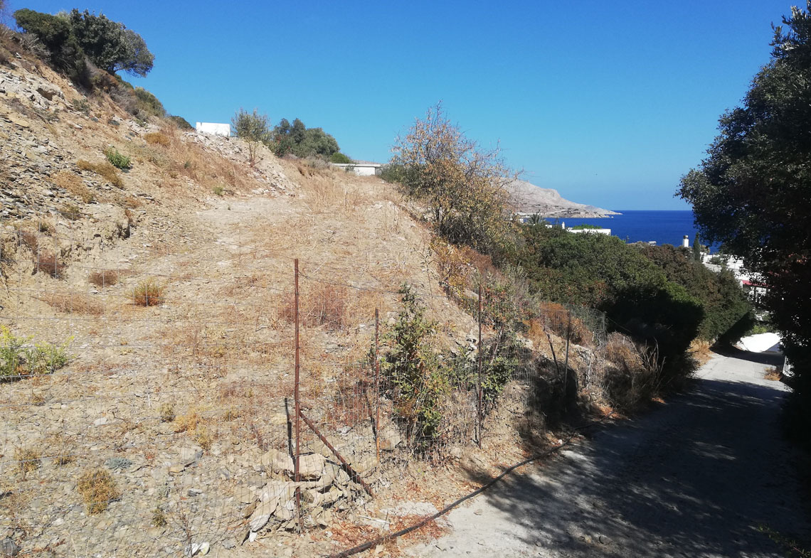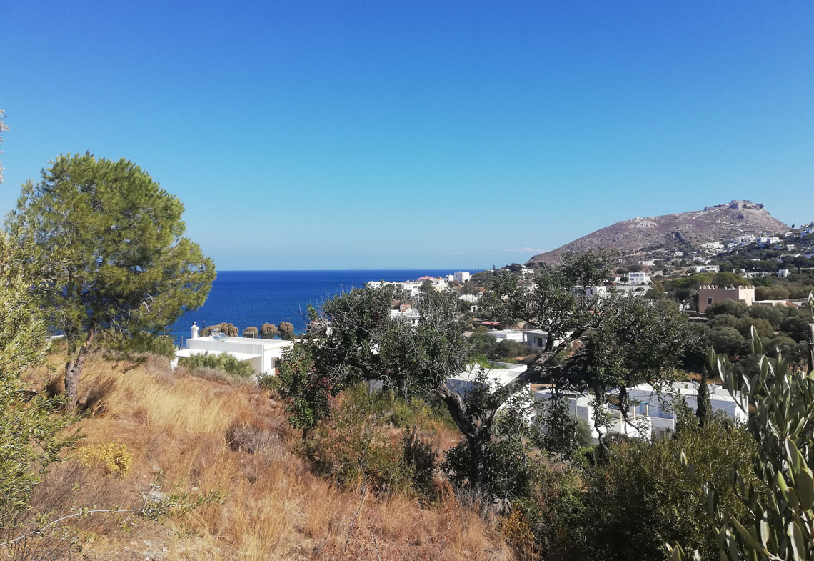 It is located in a quiet area in Crithoni with an unobstructed view of the bay of Krithoni and Panteli Castle. It is in walking distance to the beach and local cafe restaurant, and near the commercial centre and port of Aghia Marina. It has high buildability, is accessible by municipal road and with water and electricity supply.